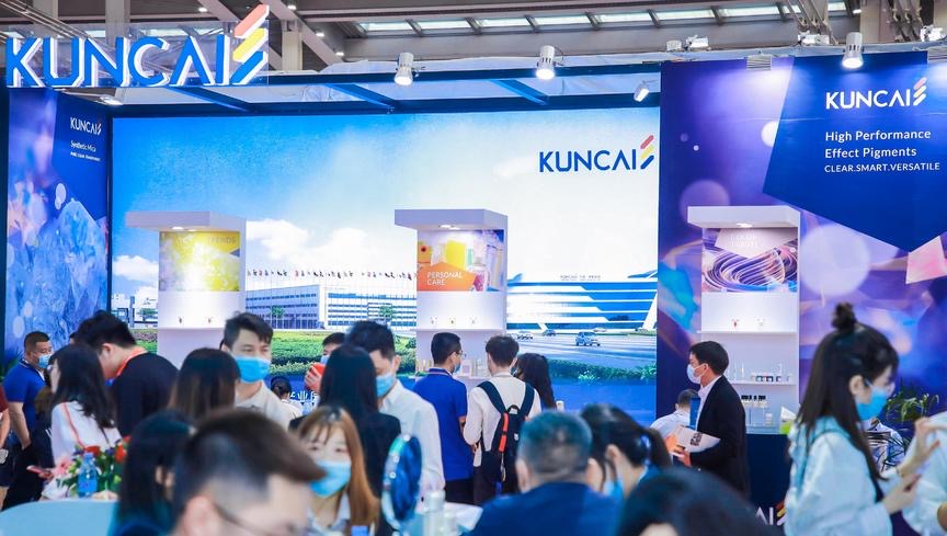 此次展会开云app登录入口携高端产品亮相展会现场,期中全新极光紫系列作为首次展示吸引广大参展观众的目光。COSMI-818V暮色玫瑰以及COSMI-819V罗兰紫采用全新工艺,填补了不含有机色素和胭脂红的高色彩饱和度的艳丽玫瑰红化妆品级珠光粉市场空白,丰富了坤彩化妆品级珠光产品。此外,采用全球首套盐酸萃取法工艺生产年产五十万吨氯化钛白及五十万吨氧化铁项目也备受行业的关注。